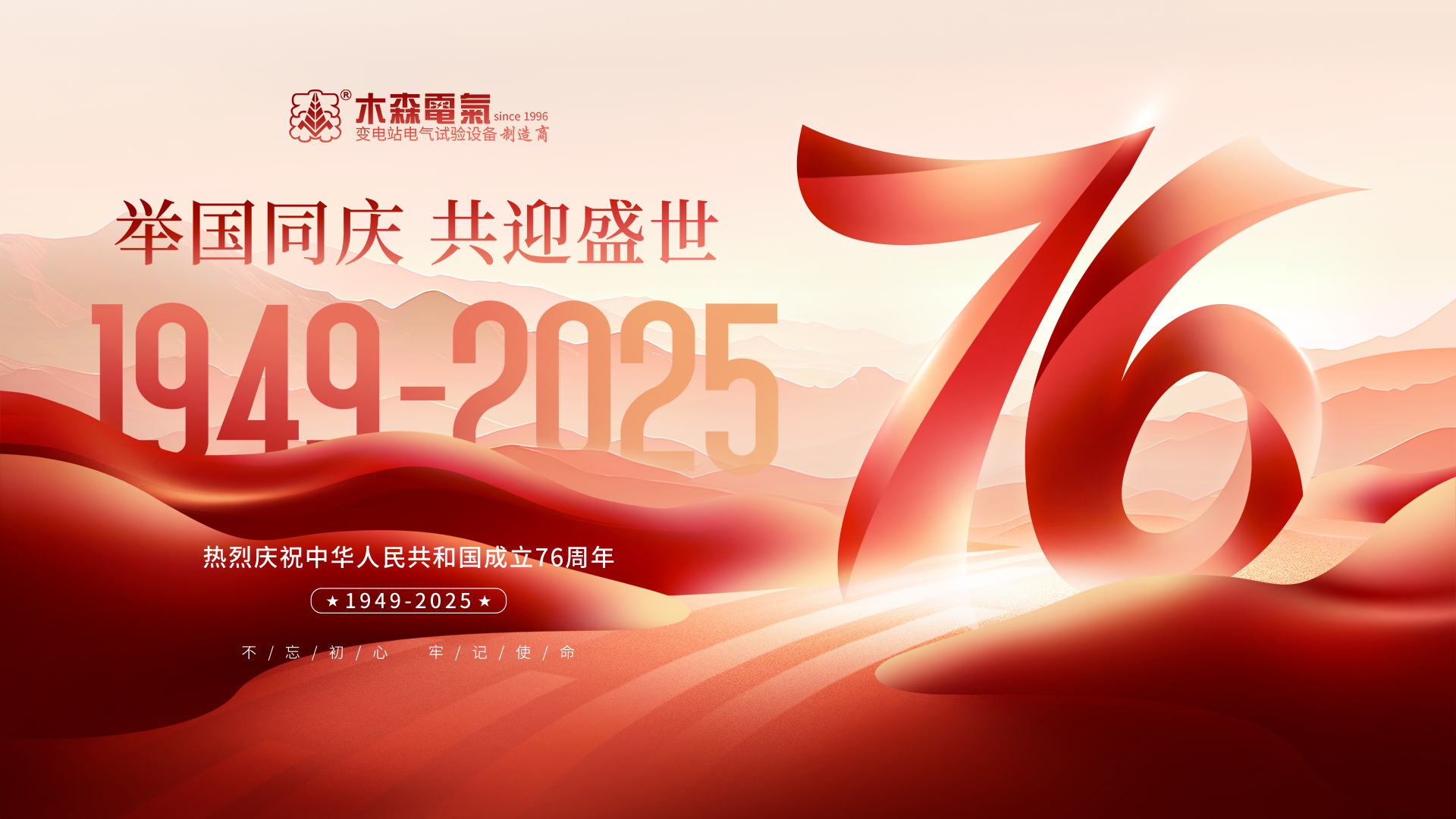 ??七十六載風華正茂,九州方圓燈火輝煌。?? 值此中華人民共和國成立76周年國慶佳節(jié)來臨之際,武漢市木森電氣有限公司攜全體員工,向長期以來信賴與支持我司發(fā)展的各級電力單位、行業(yè)伙伴與廣大客戶,致以最崇高的敬意和最誠摯的節(jié)日祝福!